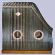 scroll-and-pillar modelsThe scroll-and-pillar body style is a frequently encountered design frill. The scroll and pillar are purely ornamental and serve no functional or structural purpose. All three manufacturers made use of this decorative feature, and examples of all are shown below. Schmidt seems to have made the greatest number of them, followed by Phonoharp. Menzenhauer seems to have been the least enthusiastic of the three toward the design. Most often, they are 4/30 chord-zithers. Less commonly they are of the single-strung 4/15 variety, and occasionally they employ the 5/21 configuration. Again, an example of each is shown. |