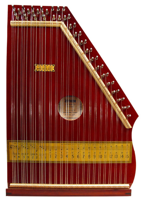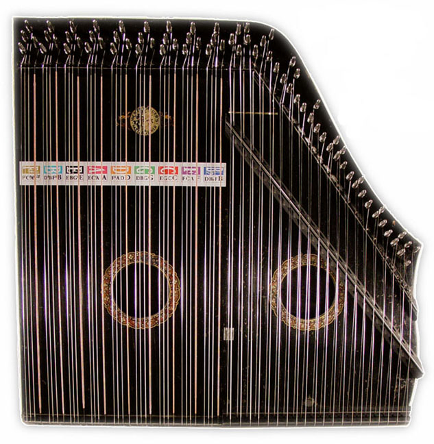6-chord zithers6-chord zithers were produced by Phonoharp and Menzenhauer. Each produced one model. Phonoharp's is their largest model in terms of number of chords and has partially chromatic melody strings. Menzenhauer's 6-chord zither is fully chromatic in the melodies. |