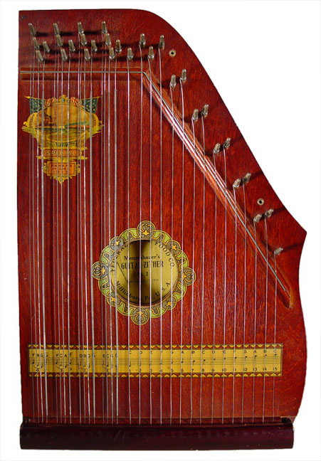 First patented May 29, 1894 by Fred. Menzenhauer, the chord-zither is one of the most playable of all fretless zithers. The term chord-zither refers to its distinctive feature, namely a section of strings that are grouped into chords for the purpose of self-accompaniment. This feature is shared by many other fretless zithers. The chord-zither was offered in many different models, the difference in them being either the number of chords and melody strings or the comparative dimensions of instruments sharing identical stringing configurations. Those new to the chord-zither and/or wishing to learn to play the instrument may want to visit the chord-zithers Introductory Page. There can be found information on the stringing and tuning specifications of the various models, as well as very brief profiles of the four manufacturers who produced chord-zithers. |