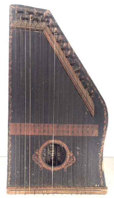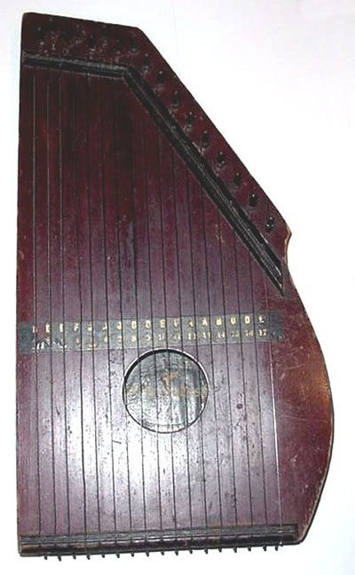 American zitherAnother "psaltery"-type instrument, the "American zither" has no chords, only melody strings. It appears in a variety of forms, some of them quite dissimilar from others. A couple of types are shown. American zithers, left to right