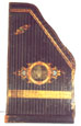 2. This example has the "harps" soundhole decal, which appears frequently on Menzenhauer & Schmidt chord-zithers of the period. It bears the "Hudson-Fulton" soundboard decal, also a M&S favorite, but the identifying text was cut off before it was applied. 3. Again we have the Menzenhauer & Schmidt "harps" soundhole decal, and again the soundboard decal is a cut-off M&S favorite, this time the "Niagara Special." |
