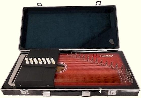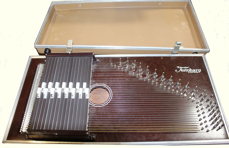 I love them both. Availability - Both classes of instruments were discontinued decades ago, but they still turn up on auction sites from time to time. Condition is always "questionable" but I've come up with both briefcase and Caroler autoharps that just needed cleaned up and tuned to play. Briefcase AutoharpsWhen I take an autoharp to a concert, at least one person usually says, "I remember my elementary school music teacher having one of those." The teacher may have had a standard autoharp, but more often than not, it was a briefcase autoharp - built into a case so it could easily be carried from room to room. Both Oscar Schmidt and Chromaharp built these, and both models turn up from time to time on the used market.