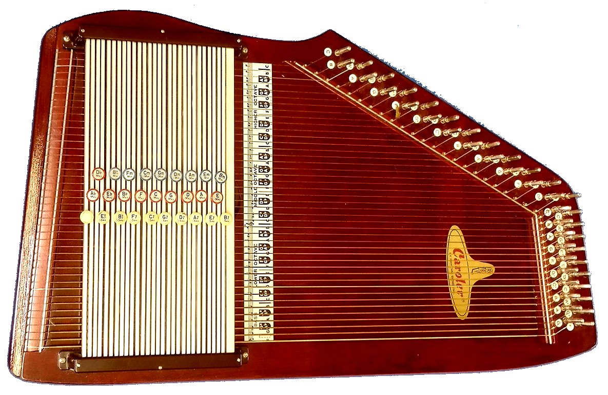 | Lap-Only AutoharpsWhen the autoharp was invented (about 1883) it was one of many similar instruments designed to make it easy for non-musicians to play music.Most of those instruments would be classified as zithers today. Rows of strings stretched over an irregularly-shaped box. Usually with sixteen or more strings for playing melodies and some feature that made it possible to play chords as well. (For more information on such instruments, check out our article "Autoharp Precursors and Competitors.") All of these instruments, were meant to be played in the lap or on a table. So were autoharps. Sometime later, autoharp players who needed to move around began holding autoharps in the "upright" position that is most common today. Over the years, most Oscar Schmidt autoharps were gradually redesigned to make that easier. But a small handful of autoharps were designed in such a way that they could never be played upright. They have to be played on the lap or on a table. These chiefly include: