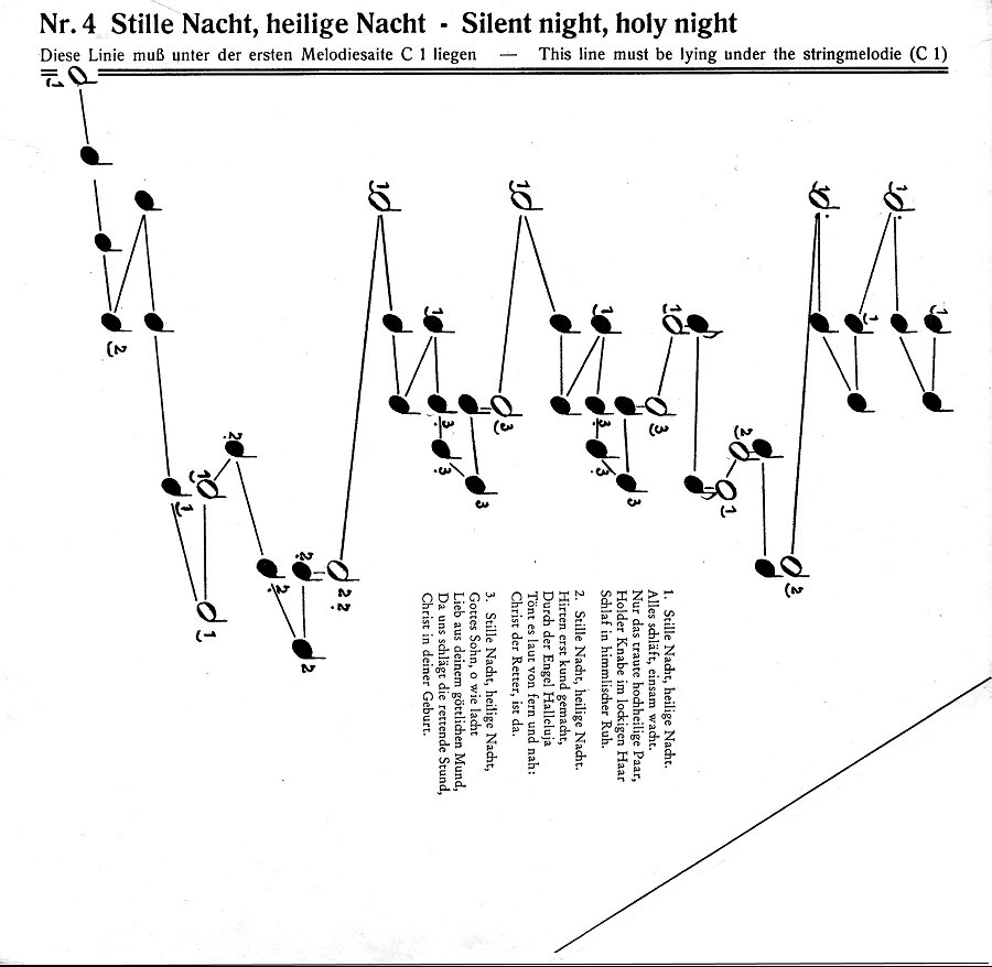 Clicking on the graphic to the right will give you a .pdf of the song sheet for "Boil That Cabbage Down." Print it at 100%. Your system may warn you that not everything will fit in the printed area. Ignore the warning. Once it's printed, trim or fold it at the dotted lines. Slide it under the strings of your zither until the double line is under the C1 melody string and all the other strings align. (There are two "C1" strings, so be sure the double line is under the first melody string, not the C1 that's part of the C chord.) If the other strings are too misaligned, you may have to doublecheck your print settings. Use the guide to pick the melody with a flatpick in your right hand. With your left hand, strum the chord as indicated each time the letter C, F, or G appears. If you've never heard "Boil That Cabbage Down," you may find it easier to try a song you must know by now - Mary had a little lamb. Again, the factory never supplied song sheets for this song, either - go figure. Our song sheets have several features that the original song sheets don't have, including lines representing the strings and the note names on the top and bottom of each string. Hopefully, this will help you learn what notes you're playing and not just learning the tune by rote. Using Song Sheets on Other Zithers? By the way, many 5-chord Hopf zithers of this era also use the same melody string arrangement - a diatonic scale to which F#, C#, and G# have been added. I don't have one onhand so I can't test our song sheets against them, but they might work with a little rescaling. Our song sheets definitely will not work with American guitar zithers - Most of them use a different scale that includes Bb. In addition the C. Robert Hopf company, who designed these 3-chord zithers in the first place, has discontinued all guitar zithers that use the partially-diatonic scale the zithers on this page use. All of their current product line are fully chromatic. So the song sheets won't work with them either. That doesn't keep people who have fallen in love with guitar zithers from learning them inside and out, and making beautiful music with them. You can learn a lot on these diminutive instruments, and move upstream later if you want a bigger sound or if you want to play in more keys. Song Sheet Library (So Far)We have obtained several of the original song sheets from zither sets that included boxes and song sheets.We tried putting the note names on a few of them, but some were so complex we gave up and just posted the rest of them as they were scanned in. A few notes about the manufacturers' song sheets.